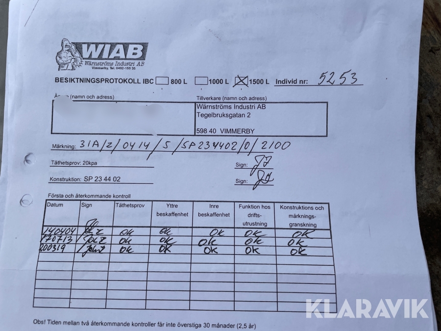 Du som köpare är skyldig att kontrollera objektet vid hämtning. Skiljer sig något avsevärt jämfört med informationen på klaravik.se? Kontakta då Klaravik innan du tar objektet från platsen. Läs fullständiga köpvillkor.