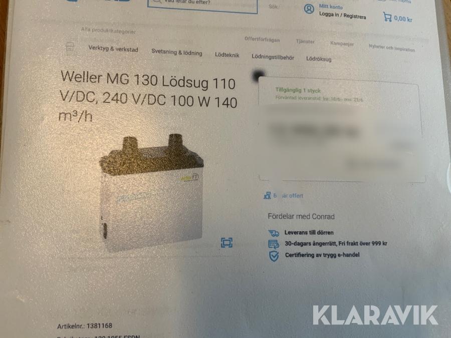 Du som köpare är skyldig att kontrollera objektet vid hämtning. Skiljer sig något avsevärt jämfört med informationen på klaravik.se? Kontakta då Klaravik innan du tar objektet från platsen. Läs fullständiga köpvillkor.