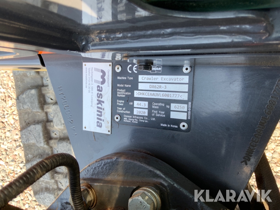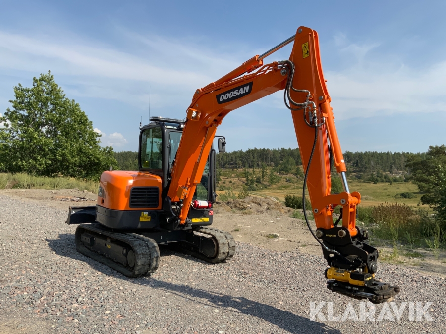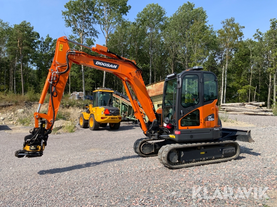 Grävmaskin Doosan DX62R med tiltrotator och skopor
