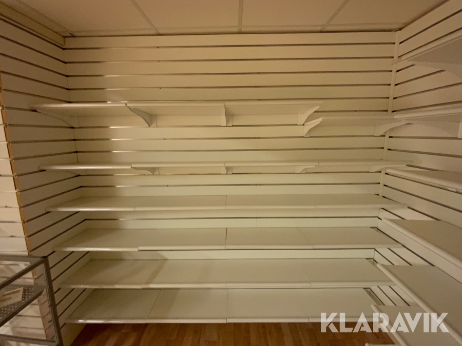 Butiksinredning spårpanel för vägg med hyllor