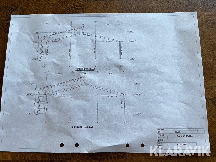 Nytillverkad stålstomme 20mx42m 840m2