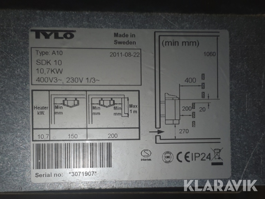 Boka frakt? Det finns ingen specifik information om frakt för just det här objektet, men om du skickar oss en förfrågan via vårt fraktformulär, så undersöker vi möjligheten. Paket, EU-pall eller större maskin? Klaravik har fraktavtal med Schenker och i de fall vi kan hjälpa till med frakt gäller det objekt som ryms i paket eller inom en EU-pall (upp till 120*80 cm och 990 kg). Det går att beställa frakt inom Sverige, dock inte till utlandet. Vid frakt på större maskiner rekommenderar vi gärna transportföretag som du kan kontakta.