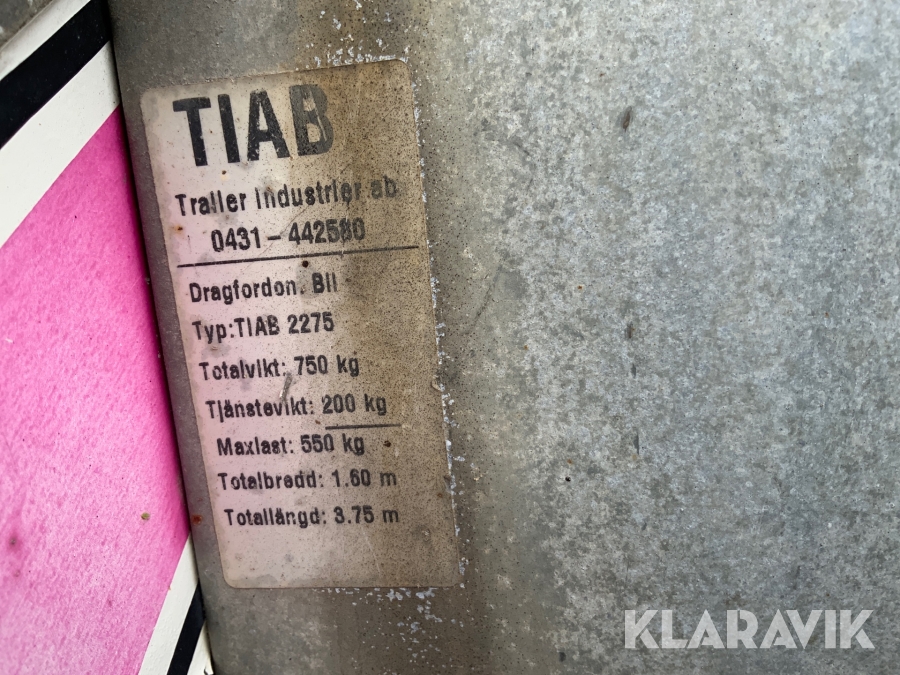 Personbilssläp Tiab 750 med kåpa