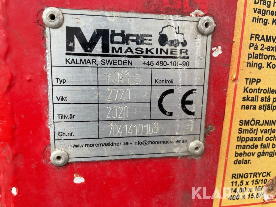 Vagn till grävmaskin Möre vagnen T041.S