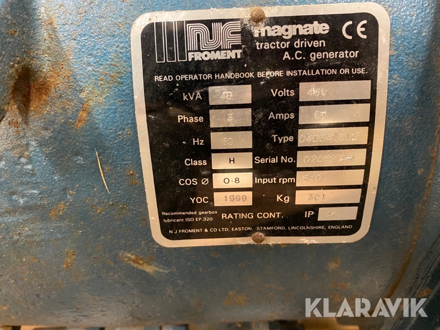 Elverk traktordrivet Magnate 40 kVA
