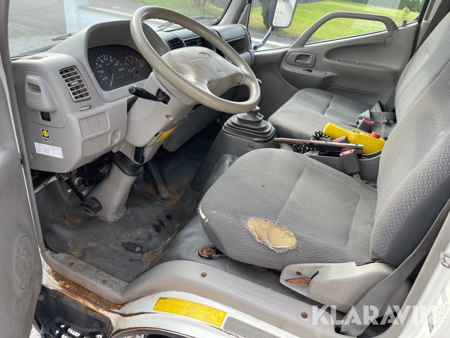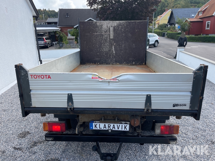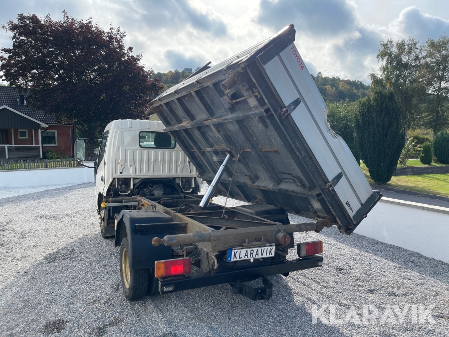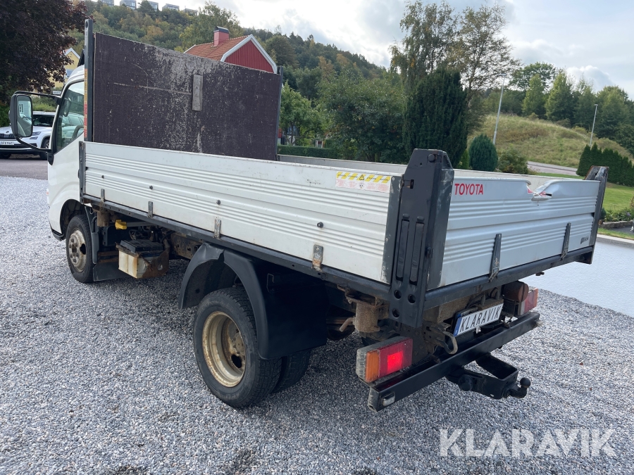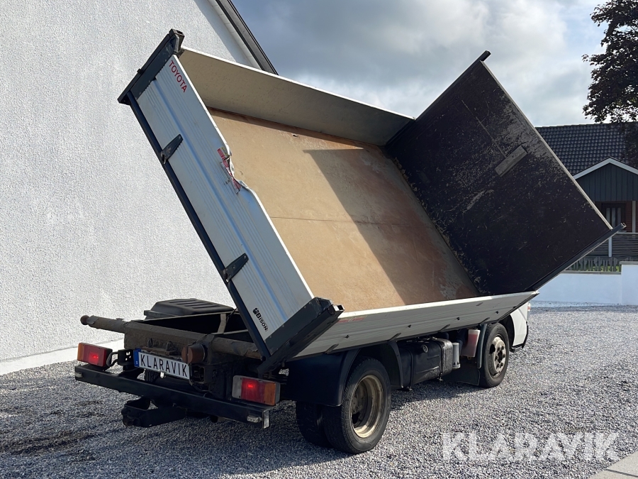 Flakbil Toyota Dyna 150 med 3-vägs tipp