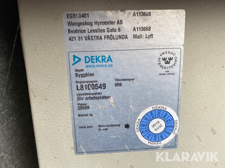 Boka frakt? Det finns ingen specifik information om frakt för just det här objektet, men om du skickar oss en förfrågan via vårt fraktformulär, så undersöker vi möjligheten. Paket, EU-pall eller större maskin? Klaravik har fraktavtal med Schenker och i de fall vi kan hjälpa till med frakt gäller det objekt som ryms i paket eller inom en EU-pall (upp till 120*80 cm och 990 kg). Det går att beställa frakt inom Sverige, dock inte till utlandet. Vid frakt på större maskiner rekommenderar vi gärna transportföretag som du kan kontakta.