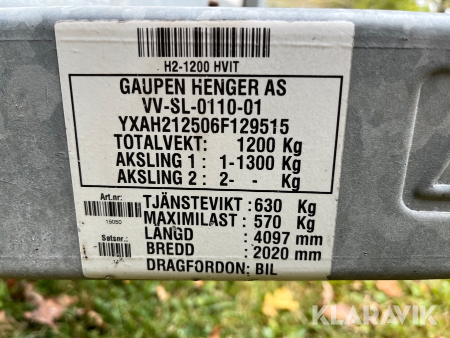 Hästtrailer Värmlandsvagnen Gaupen H21250