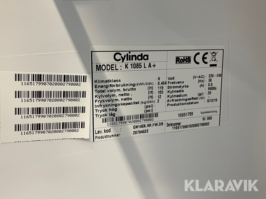 Kylskåp Cylinda K 1085