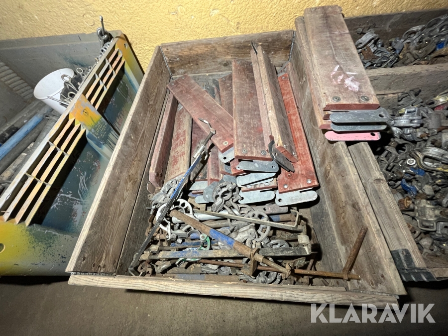 Ca 5 pallar med kortspira, lås/knutar m.m