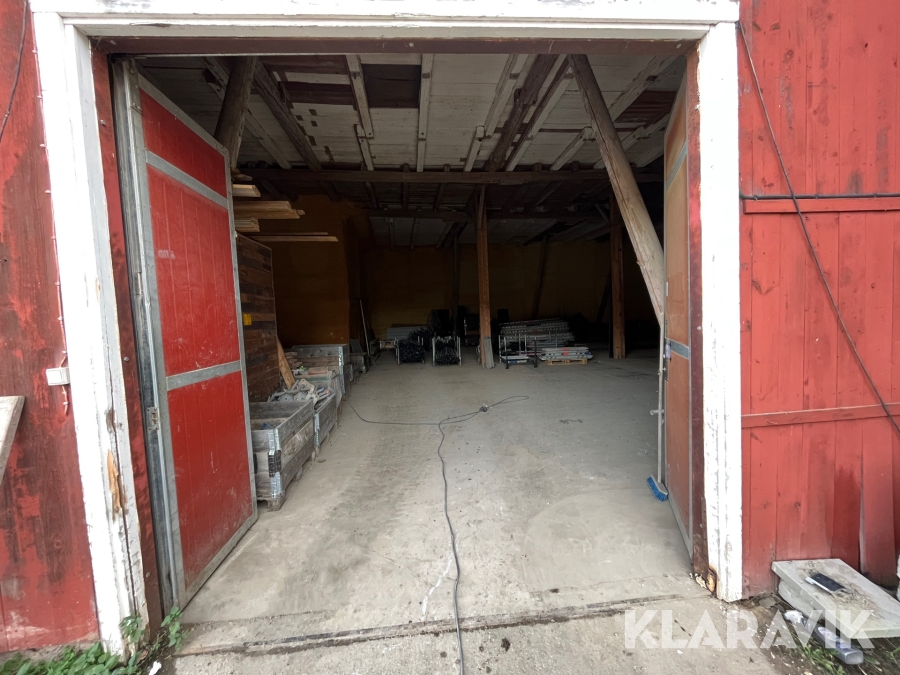 Står inomhus i en lada, ingen last eller lyfthjälp finns på platsen. Betonggolv, ingen lastkaj. Portmått är 3x3meter.