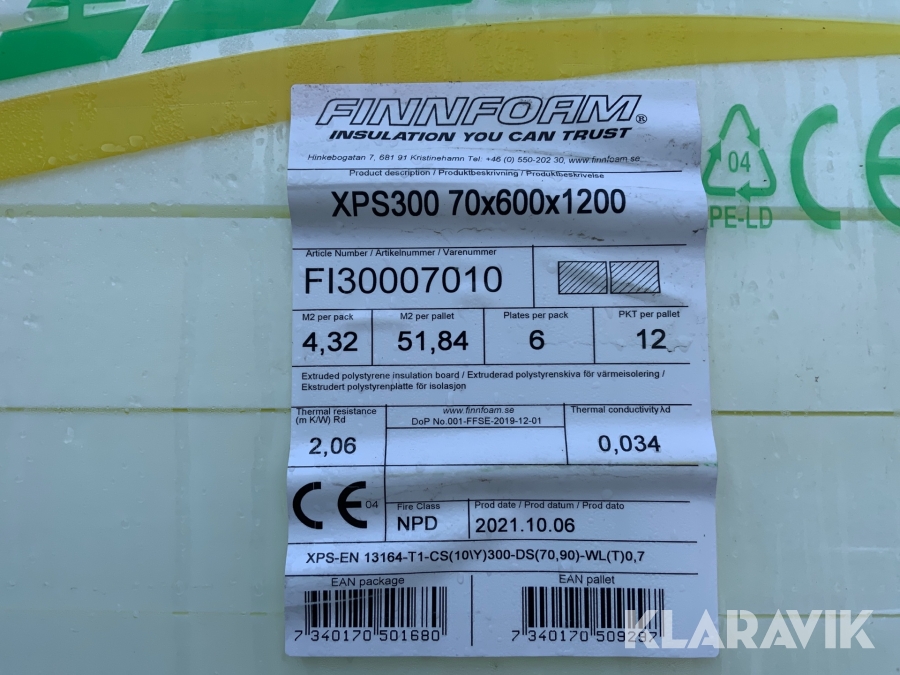 Cellplast isolering Finnfoam XPS300 ca 35 m2