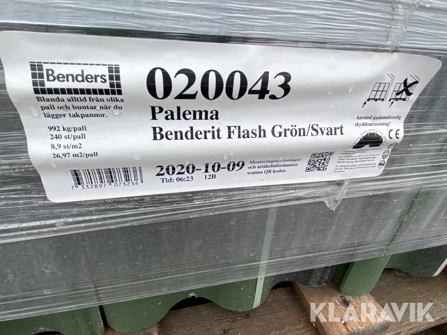 Takpannor Benders Palema benderit flash grön/svart 8st pallar