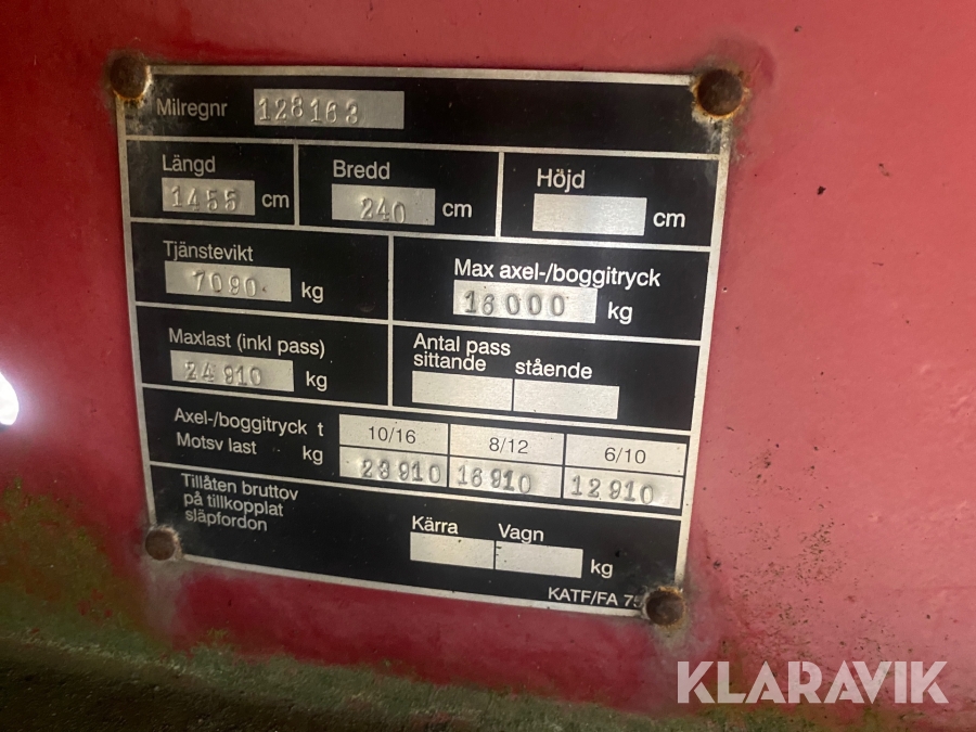 Boka frakt? Det finns ingen specifik information om frakt för just det här objektet, men om du skickar oss en förfrågan via vårt fraktformulär, så undersöker vi möjligheten. Paket, EU-pall eller större maskin? Klaravik har fraktavtal med Schenker och i de fall vi kan hjälpa till med frakt gäller det objekt som ryms i paket eller inom en EU-pall (upp till 120*80 cm och 990 kg). Det går att beställa frakt inom Sverige, dock inte till utlandet. Vid frakt på större maskiner rekommenderar vi gärna transportföretag som du kan kontakta.