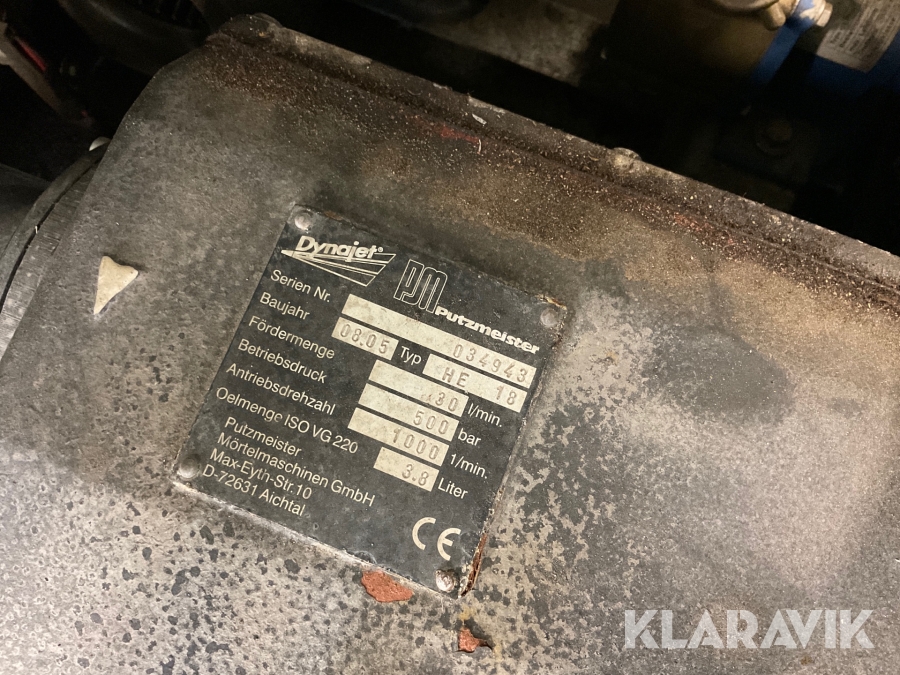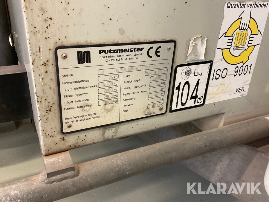 Högtryckssläp Putzmeister 500 med slangar och munstycken
