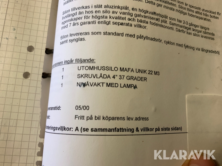 Du som köpare är skyldig att kontrollera objektet vid hämtning. Skiljer sig något avsevärt jämfört med informationen på klaravik.se? Kontakta då Klaravik innan du tar objektet från platsen. Läs fullständiga köpvillkor.
