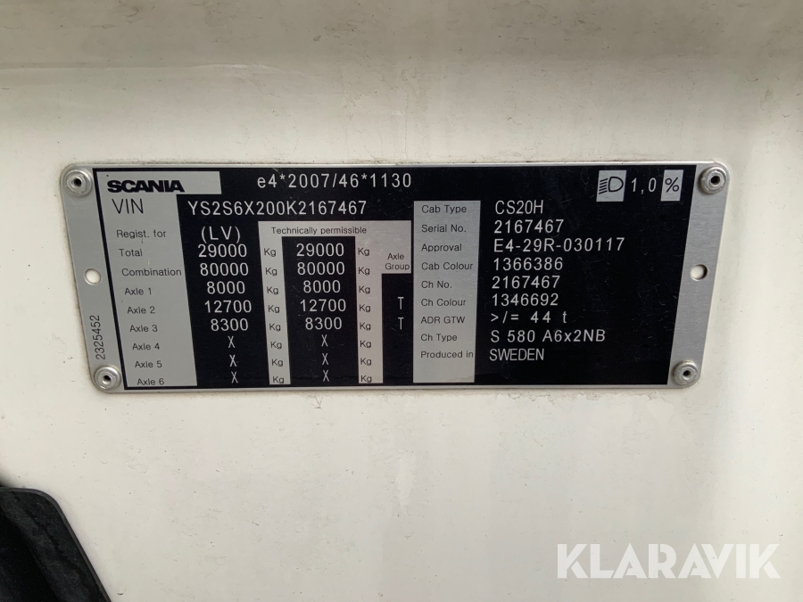 • Serie/chassinummer framgår
