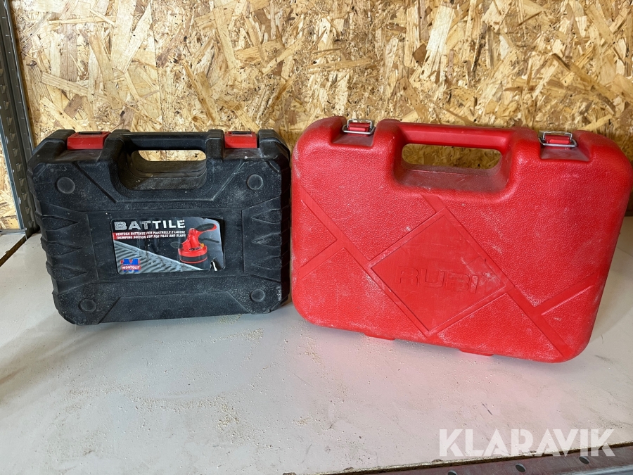 Plattvibrator med ställbar vibrationsfrekvens och sugkopp, som även fungerar som plattlyft. Plattvibratorn vibrerar ut luft under plattorna och förbättrar vidhäftningen.