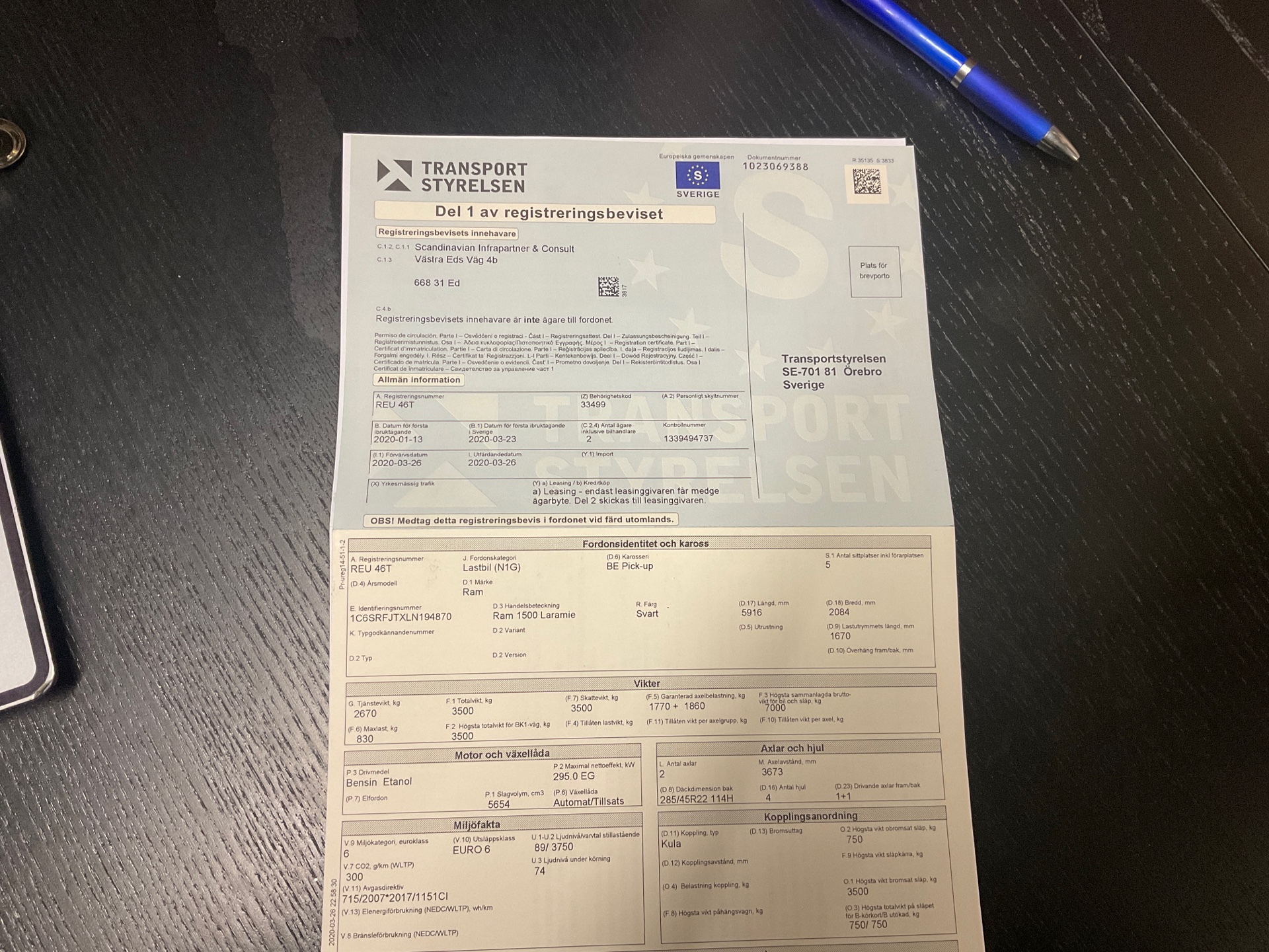 • Serie/chassinummer framgår