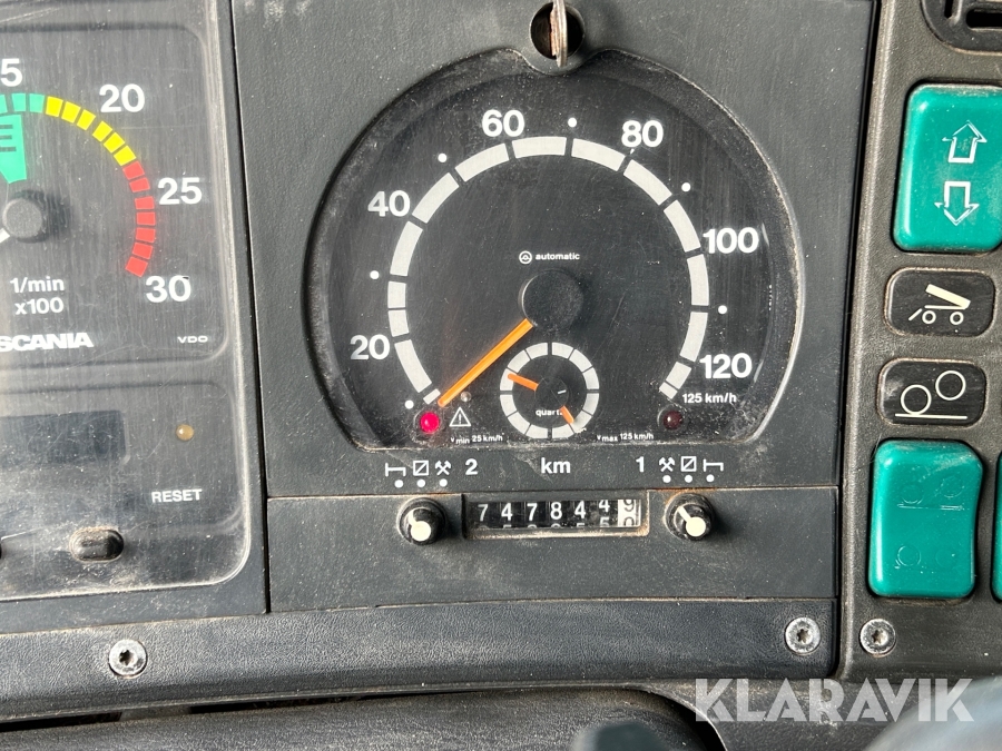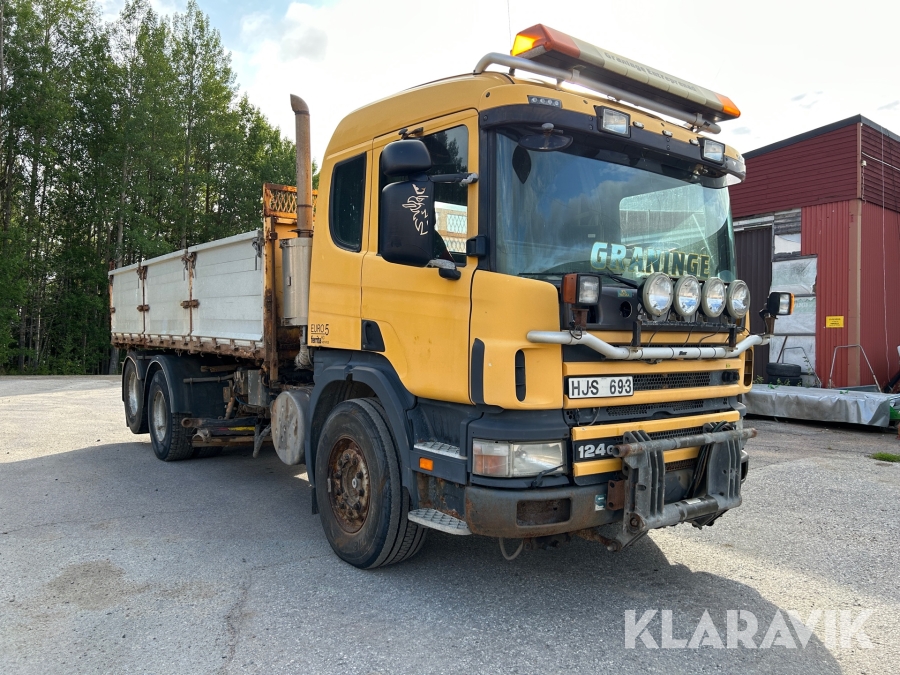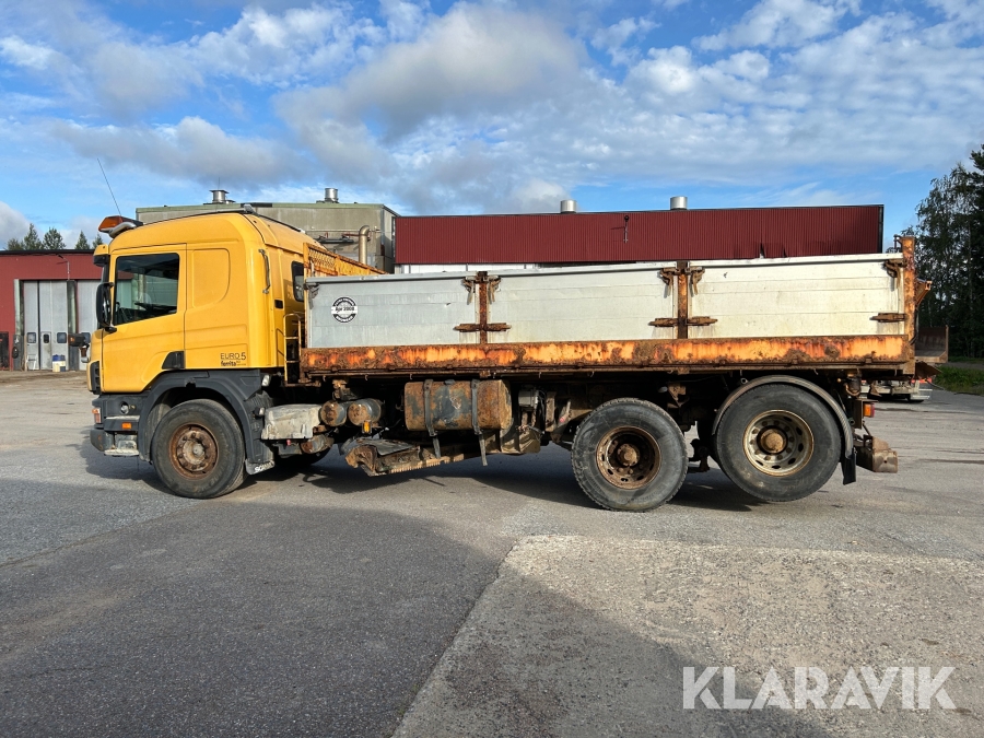 Lastbil Scania P 124 med tippflak