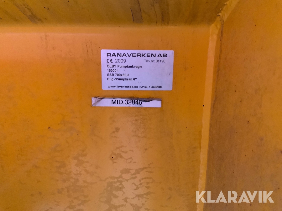 Pumptankvagn Olby 15000 L med sug och pumpkran