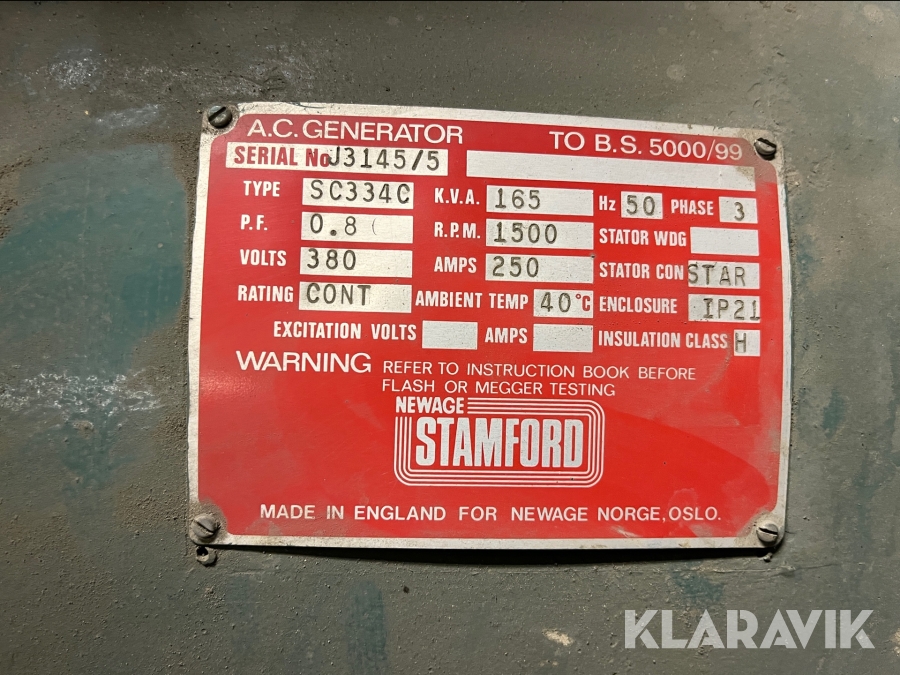 Reservkraftaggregat Genetch 165 kVA