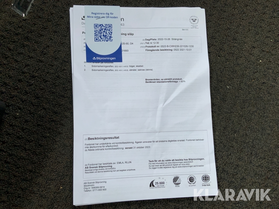 Du som köpare är skyldig att kontrollera objektet vid hämtning. Skiljer sig något avsevärt jämfört med informationen på klaravik.se? Kontakta då Klaravik innan du tar objektet från platsen. Läs fullständiga köpvillkor.