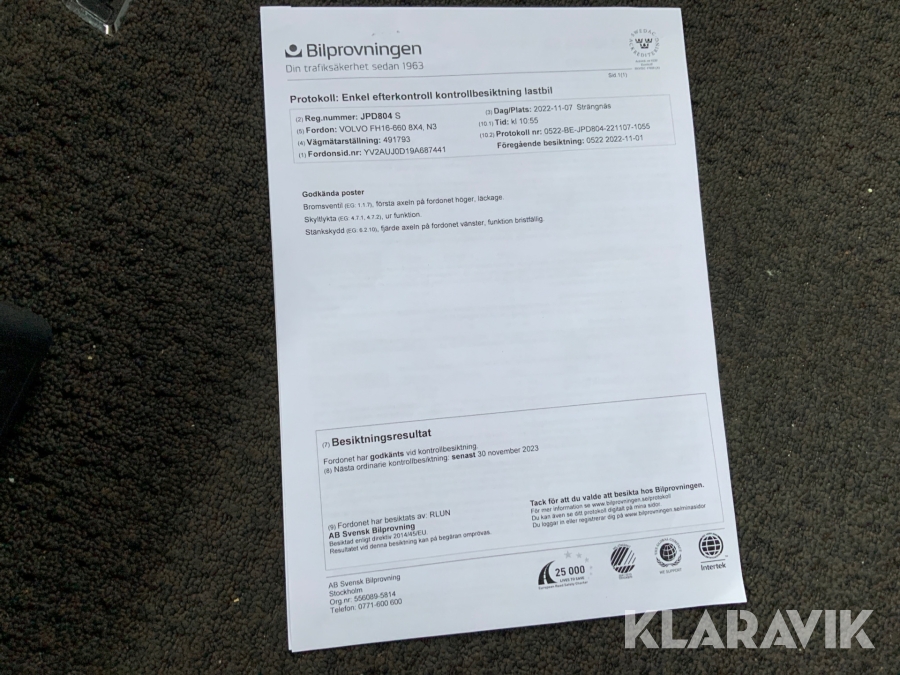 • Serie/chassinummer framgår