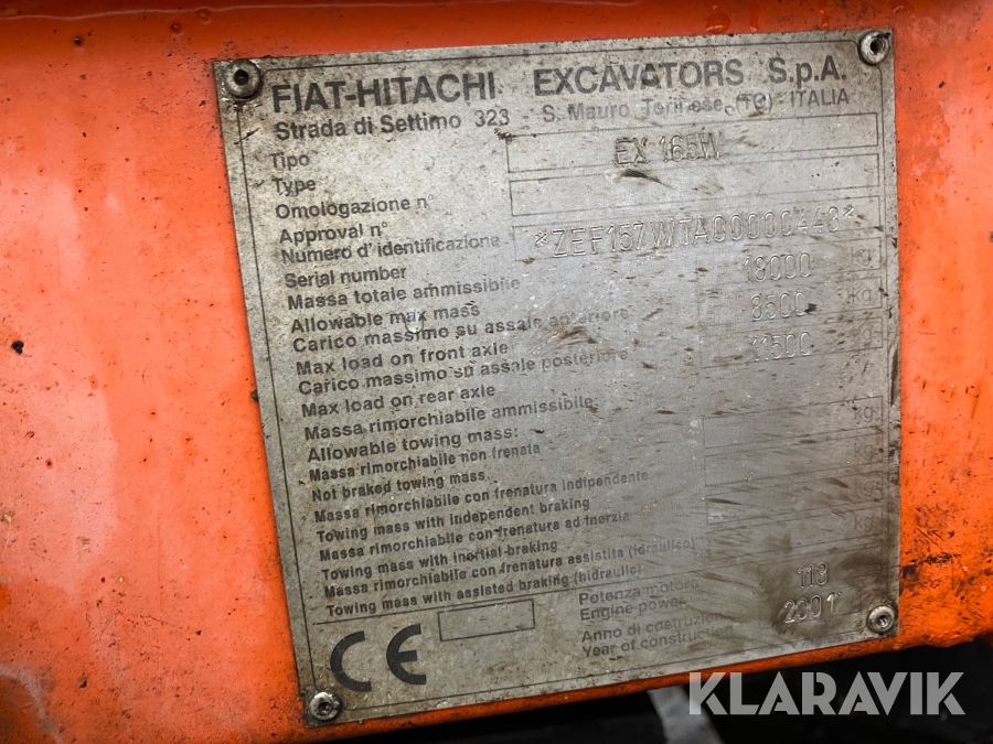 Grävmaskin Fiat Hitachi EX 165W