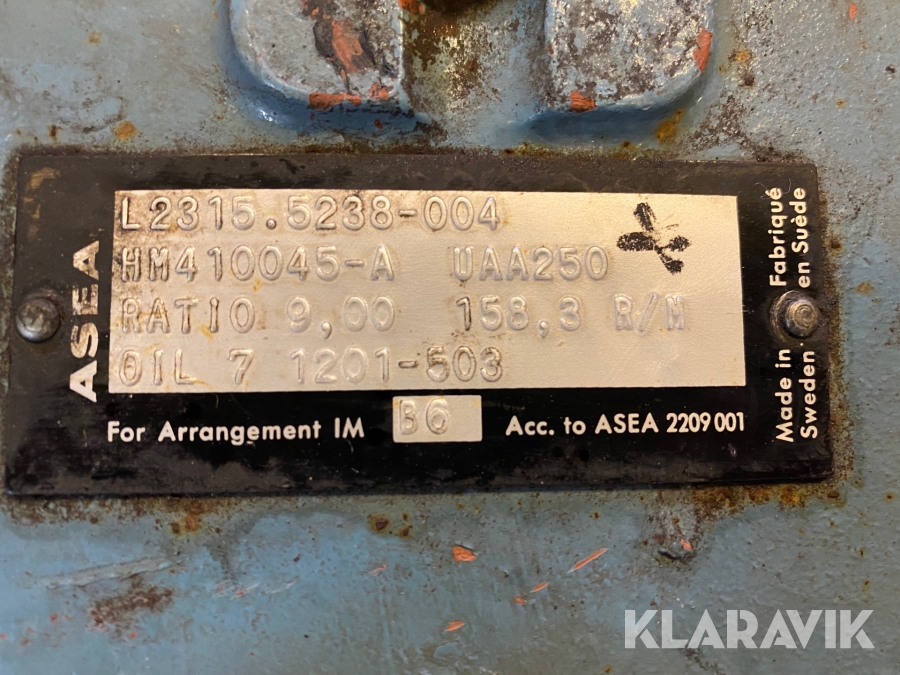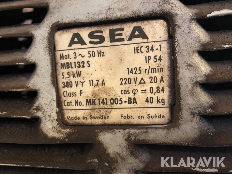Elmotor med kuggväxel Asea Mbl132s 5,5kW