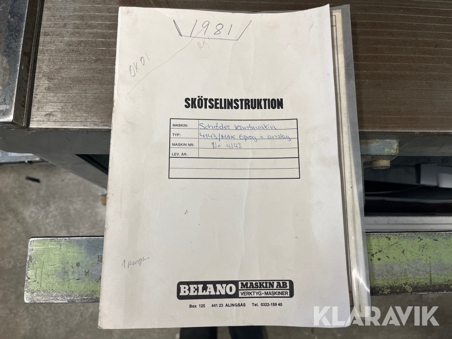 Boka frakt? Det finns ingen specifik information om frakt för just det här objektet, men om du skickar oss en förfrågan via vårt fraktformulär, så undersöker vi möjligheten. Paket, EU-pall eller större maskin? Klaravik har fraktavtal med Schenker och i de fall vi kan hjälpa till med frakt gäller det objekt som ryms i paket eller inom en EU-pall (upp till 120*80 cm och 990 kg). Det går att beställa frakt inom Sverige, dock inte till utlandet. Vid frakt på större maskiner rekommenderar vi gärna transportföretag som du kan kontakta.
