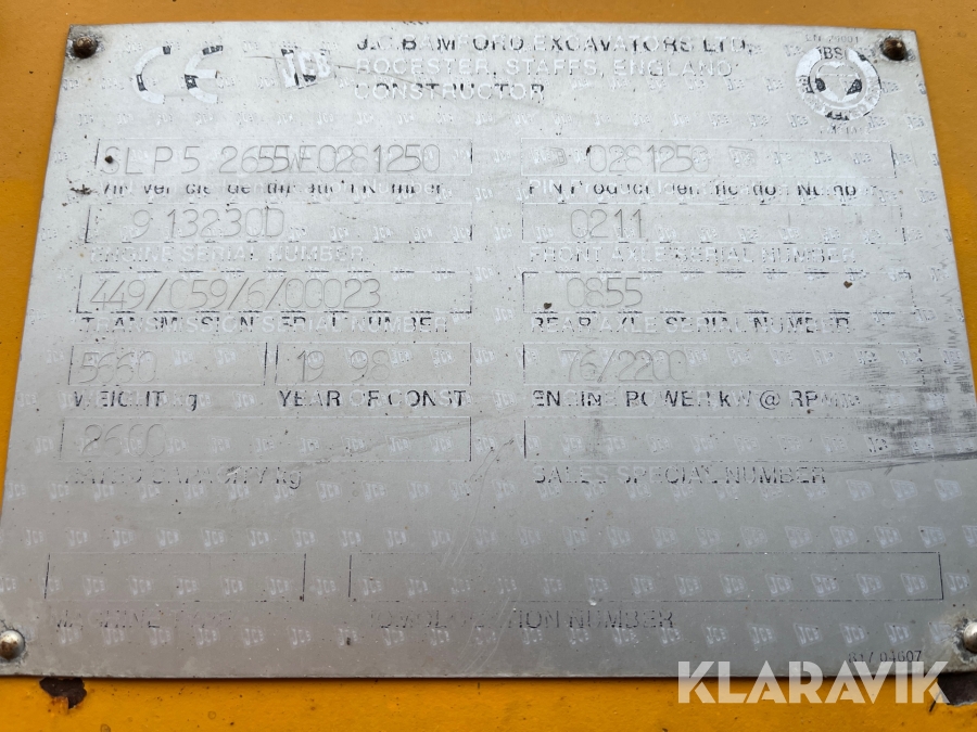 • Serie/chassinummer framgår