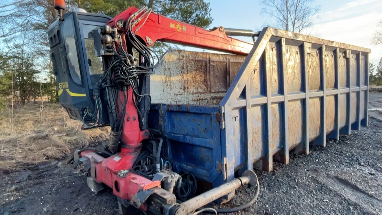 Lastväxlarcontainer med Palfinger E-110 L 80 timmerkran