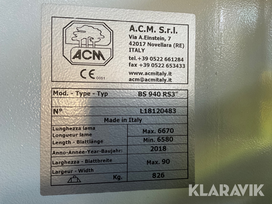 Klyvbandsåg ACM BS940 med matarverk och smörjning