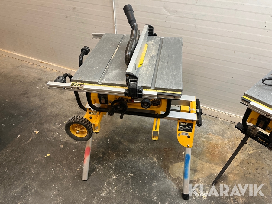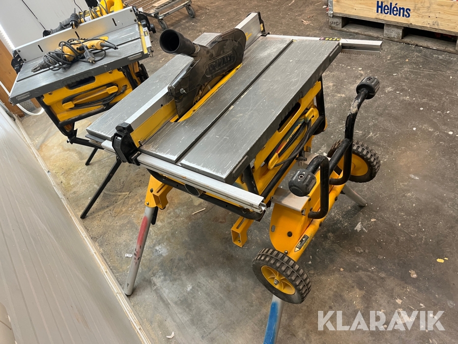 Klyv/bordssåg, en på rullstativ, den andra på fällbart stativ.