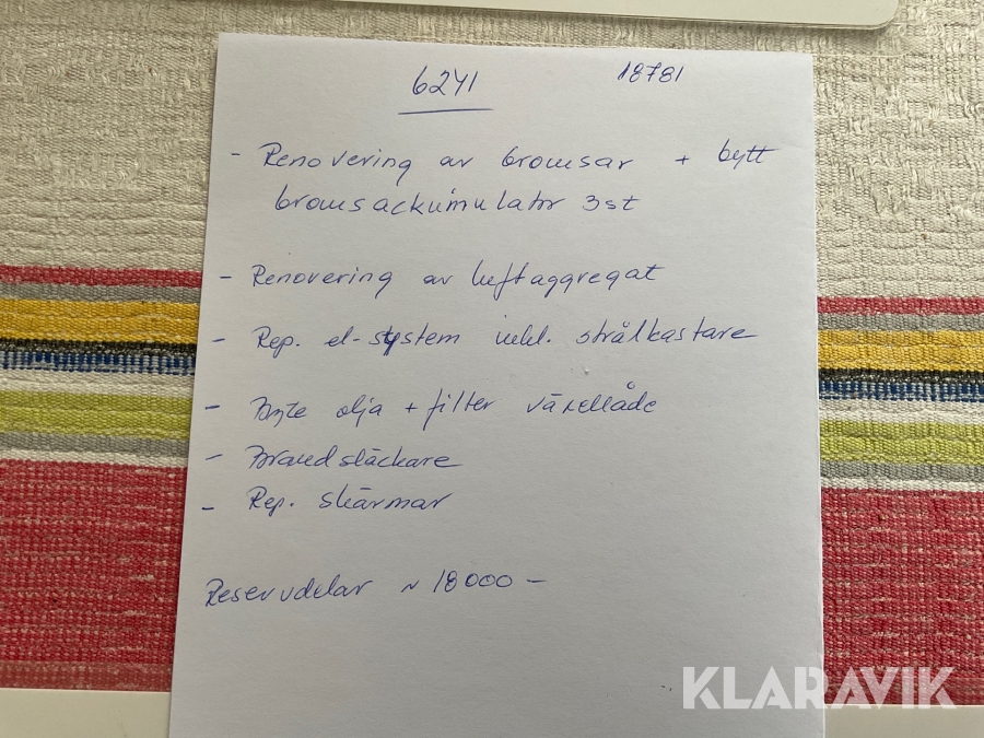 Du som köpare är skyldig att kontrollera objektet vid hämtning. Skiljer sig något avsevärt jämfört med informationen på klaravik.se? Kontakta då Klaravik innan du tar objektet från platsen. Läs fullständiga köpvillkor.
