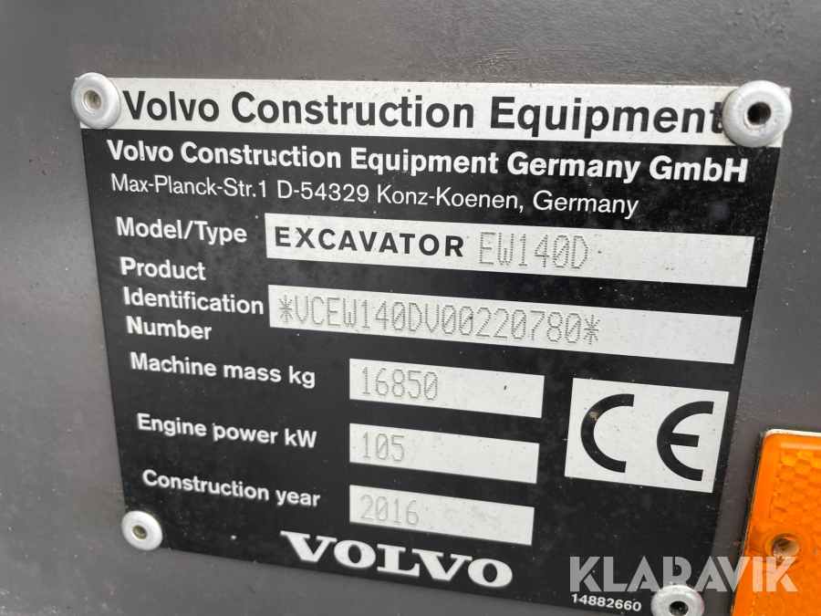 Hjulgrävare Volvo EW140D med tiltrotator