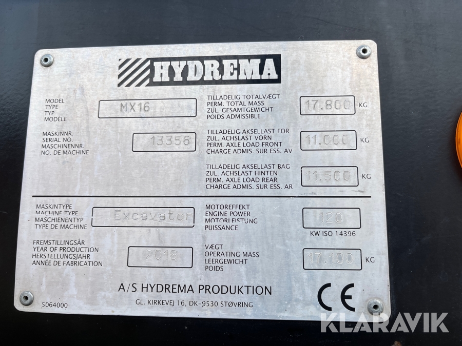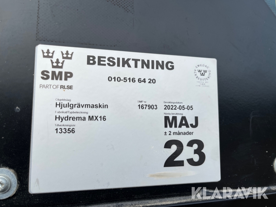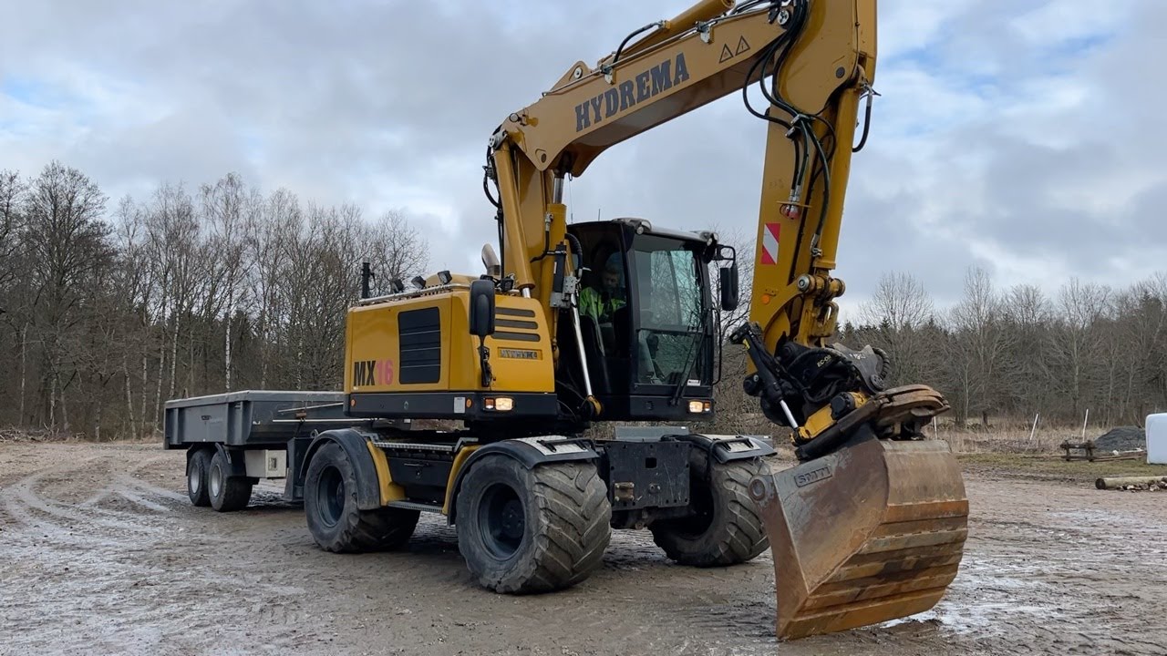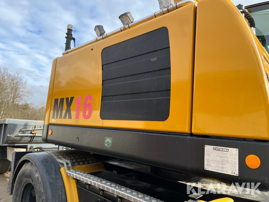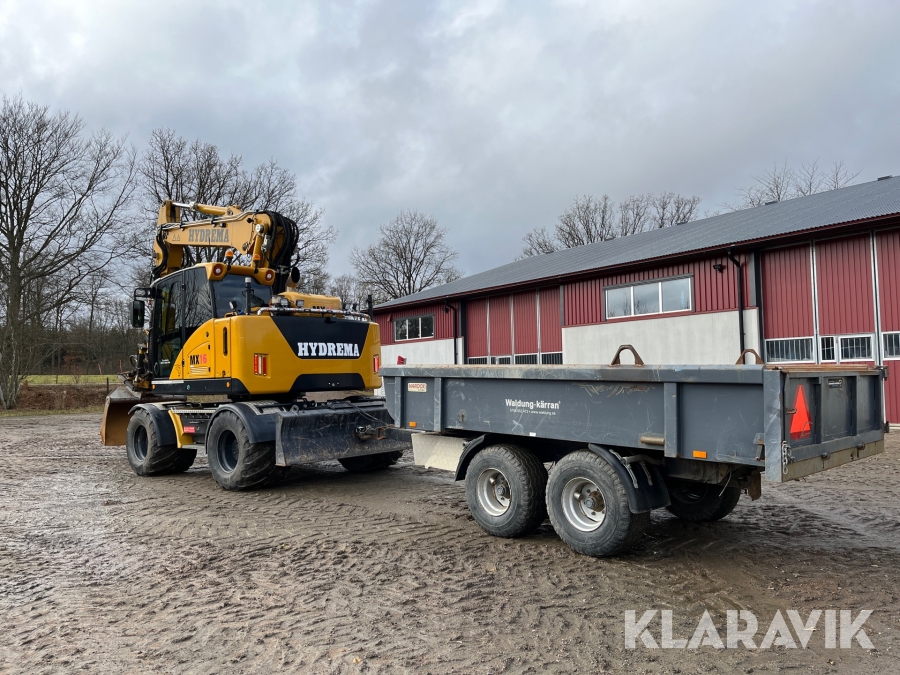 Grävmaskin Hydrema MX16 med vagn och tiltrotator