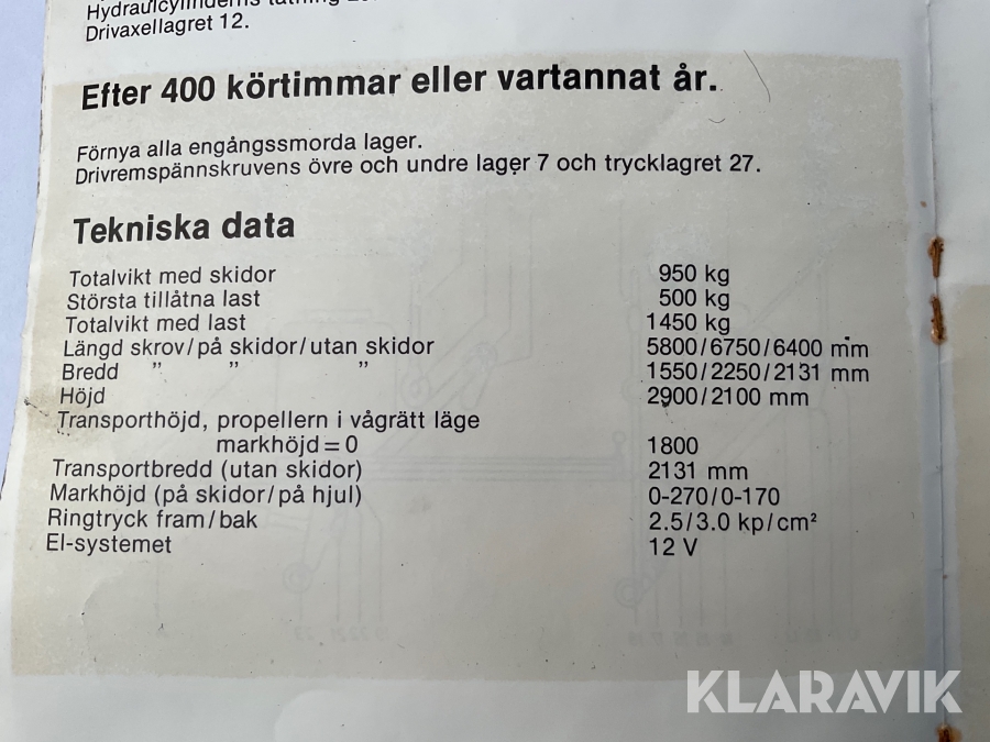 Boka frakt? Det finns ingen specifik information om frakt för just det här objektet, men om du skickar oss en förfrågan via vårt fraktformulär, så undersöker vi möjligheten. Paket, EU-pall eller större maskin? Klaravik har fraktavtal med Schenker och i de fall vi kan hjälpa till med frakt gäller det objekt som ryms i paket eller inom en EU-pall (upp till 120*80 cm och 990 kg). Det går att beställa frakt inom Sverige, dock inte till utlandet. Vid frakt på större maskiner rekommenderar vi gärna transportföretag som du kan kontakta.