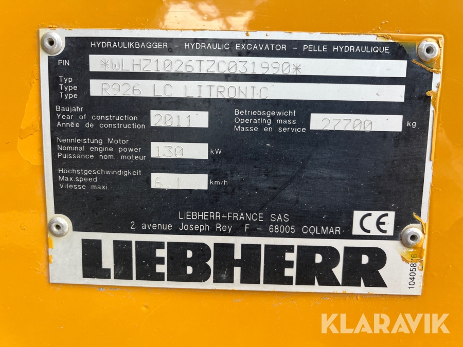 Grävmaskin Liebherr R926 LC Litronic