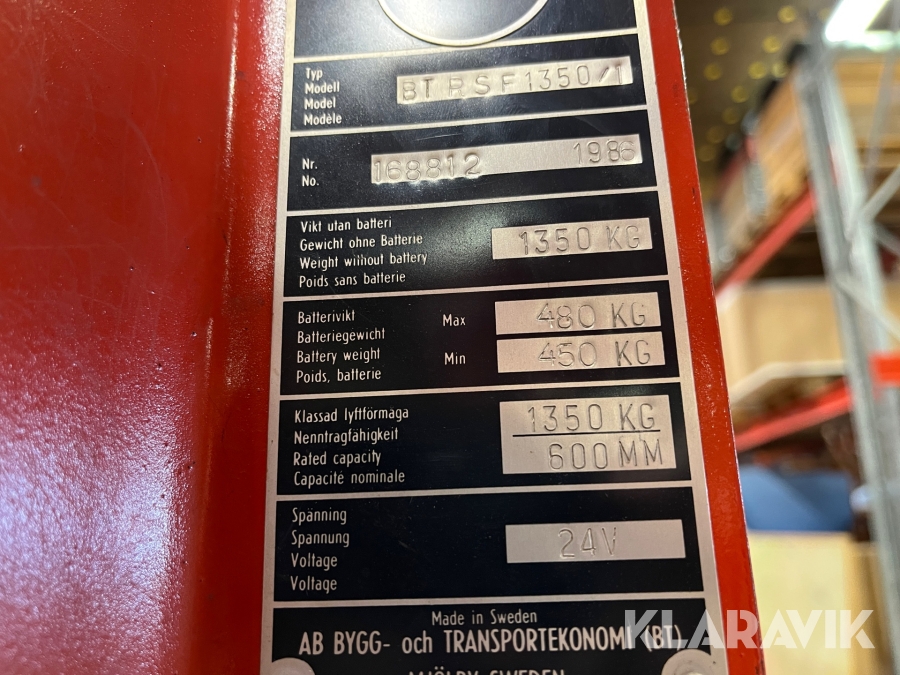 Höglyftande åkstaplare BT BTRSF1350/1
