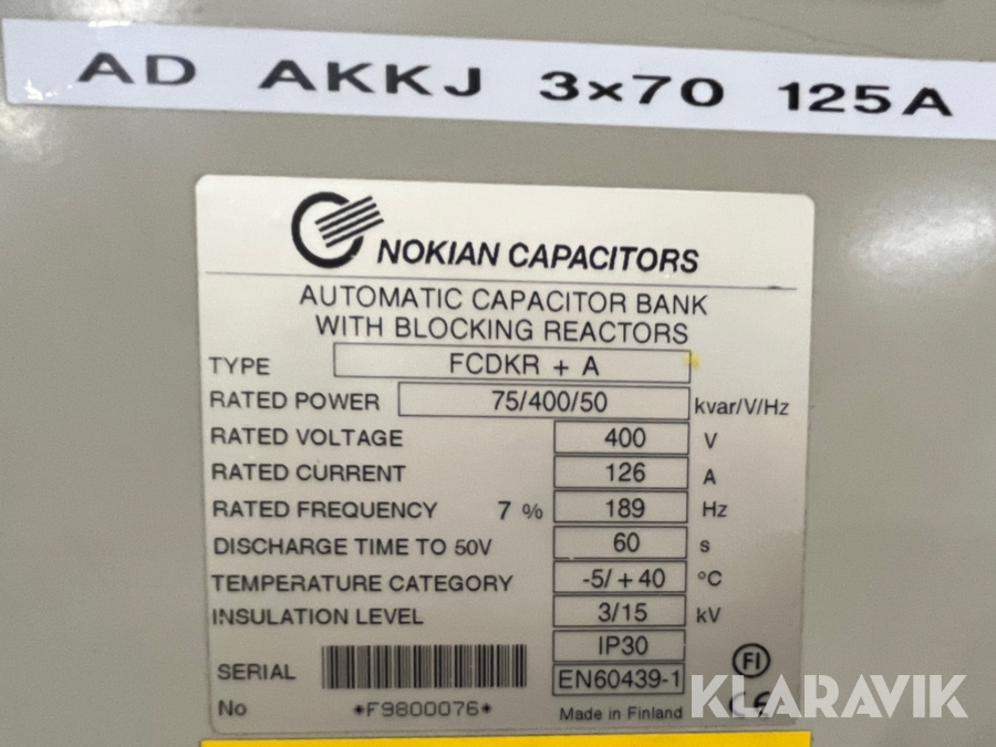 Lågspänningskondensatorbatterier Nokian Capacitors FCDKR+A