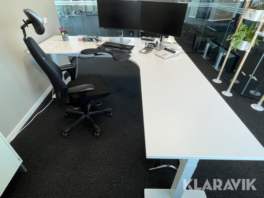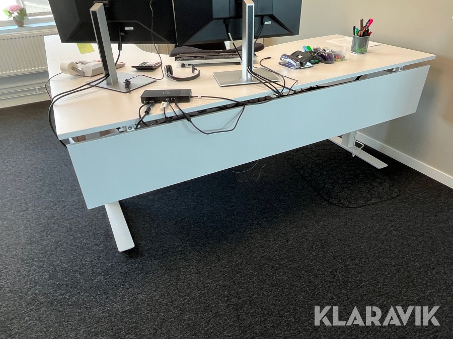 Elektriskt höj/sänkbart kontorsbord från Kinnarps, ca. 200x220cm (extra armstödet ingår)