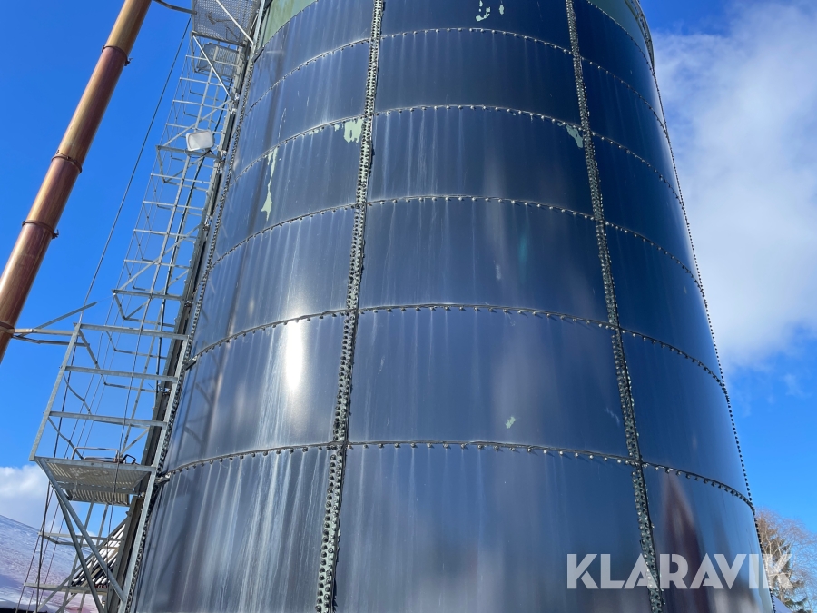 Tornsilo med avlastarbord, transportband samt kastfläkt