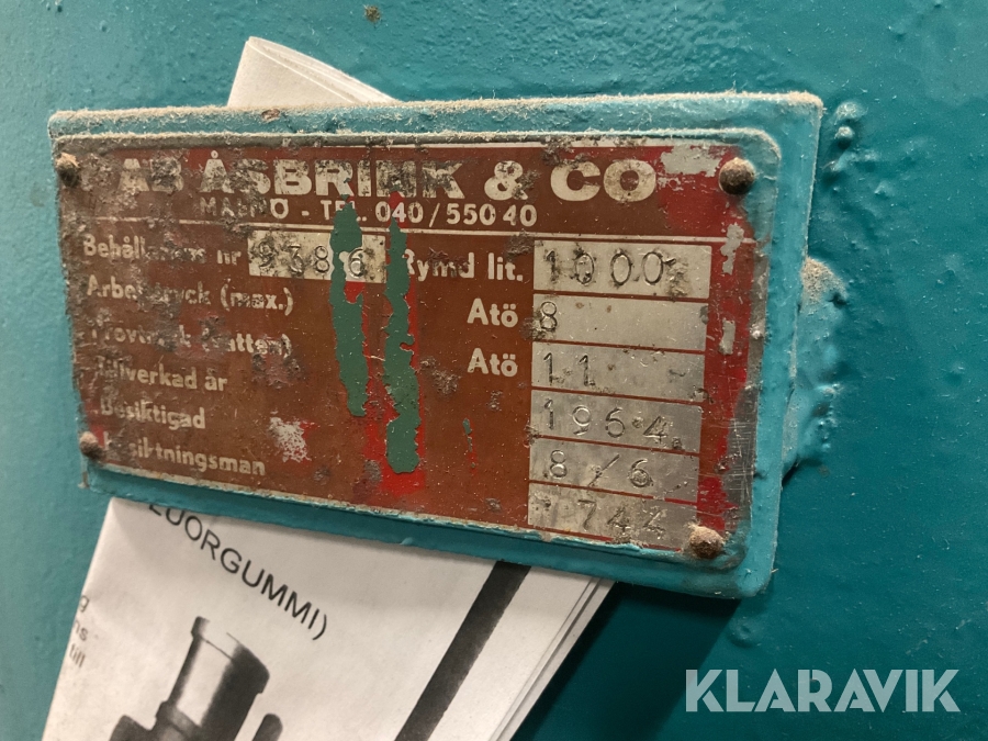 Lufttank AB Åsbrink & Co 1000 liter