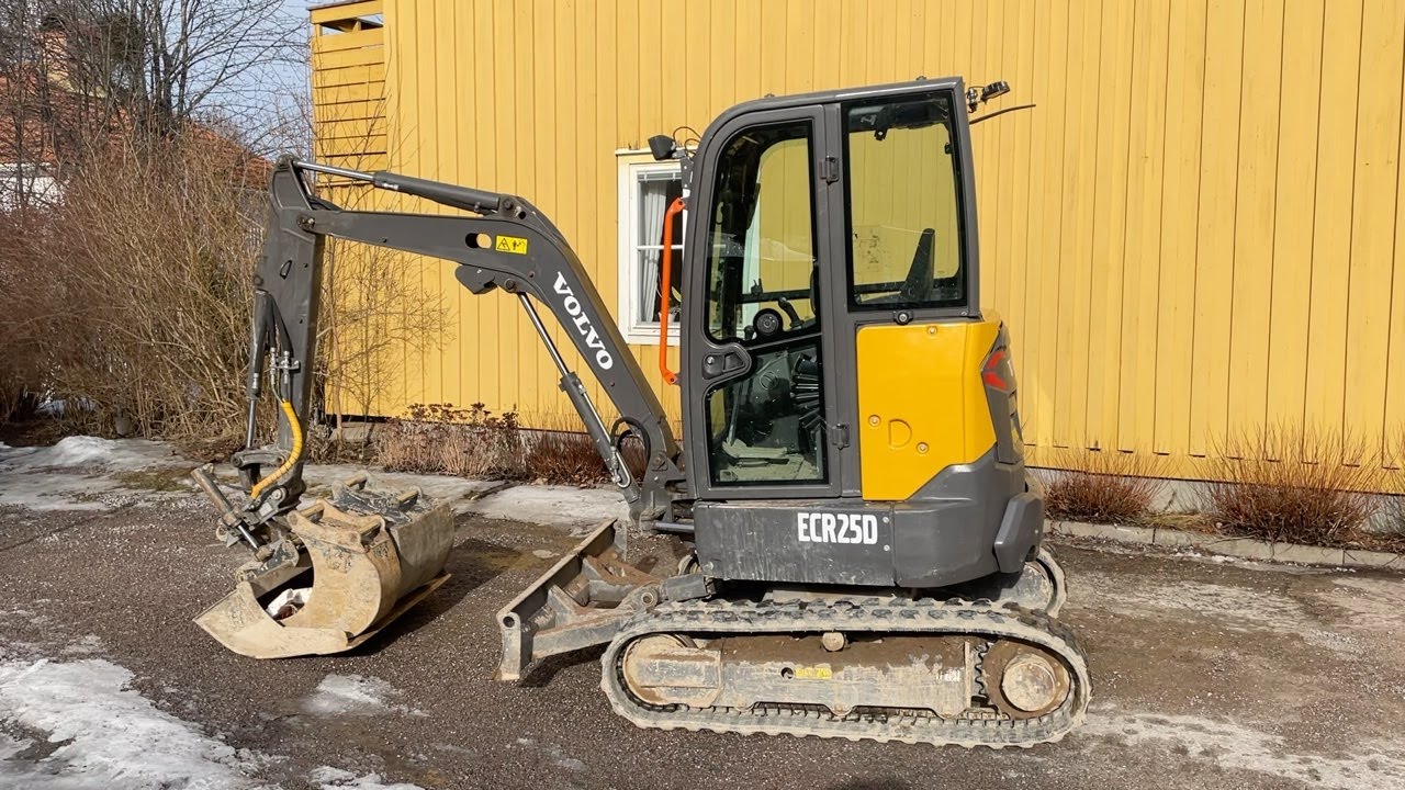 Grävmaskin Volvo ECR25D med tiltfäste och redskap