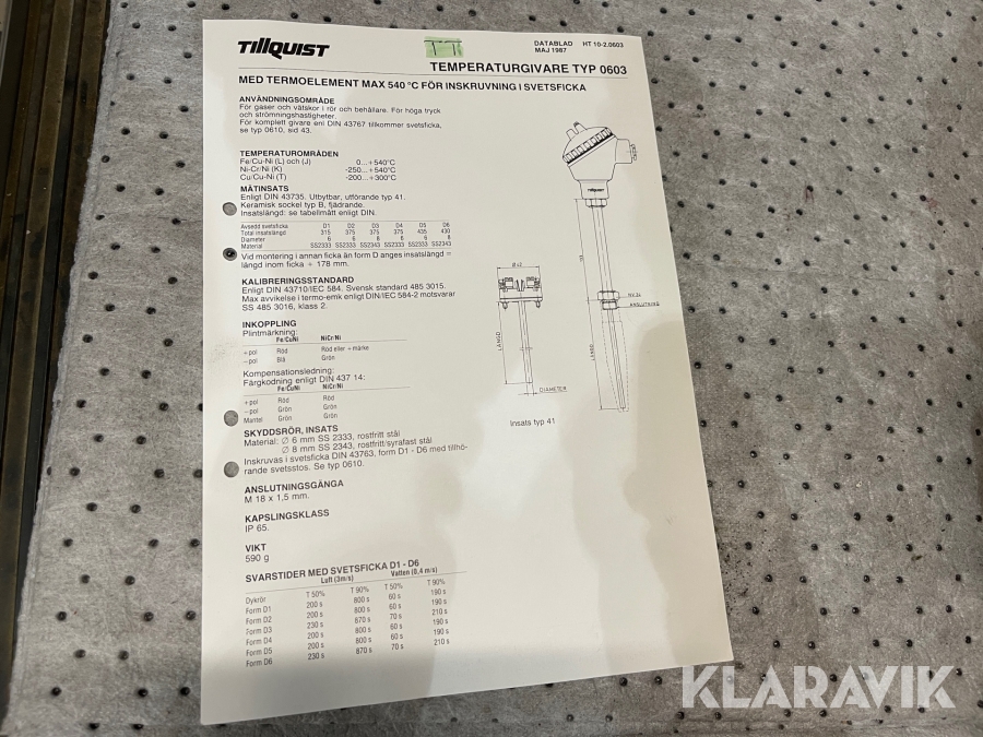 Temperaturgivare Tillquist 0603