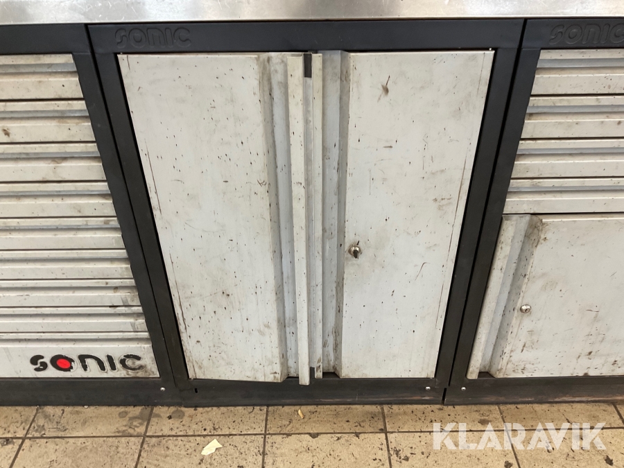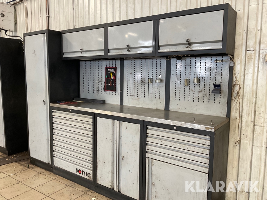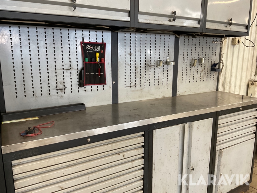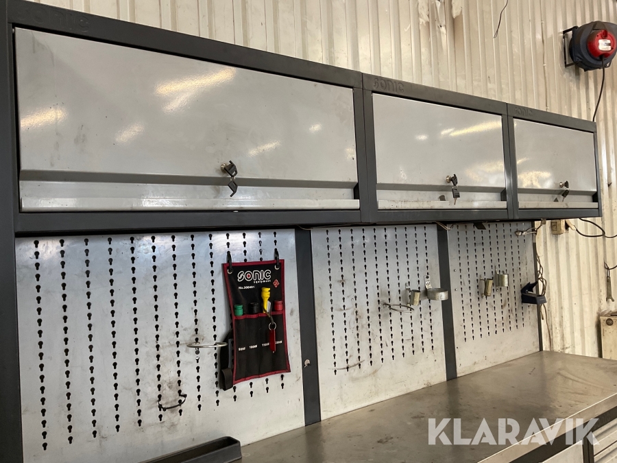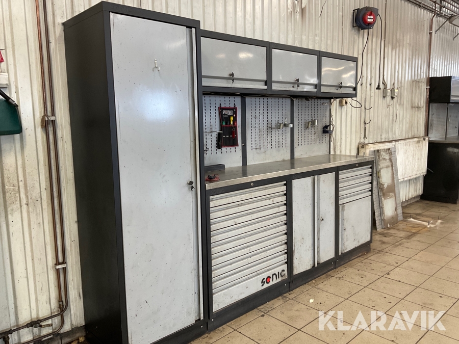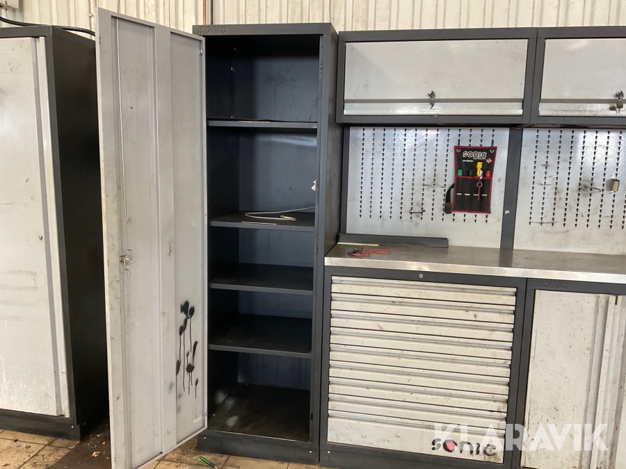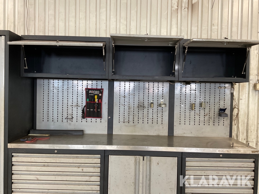 Verkstadsskåp Sonic 3 sektioner med högskåp med diverse olika verktyg