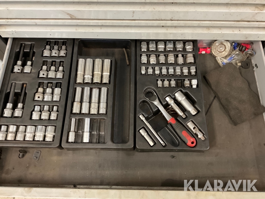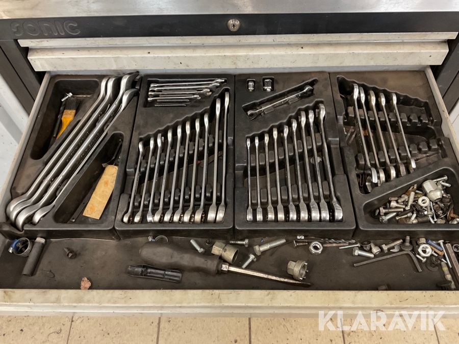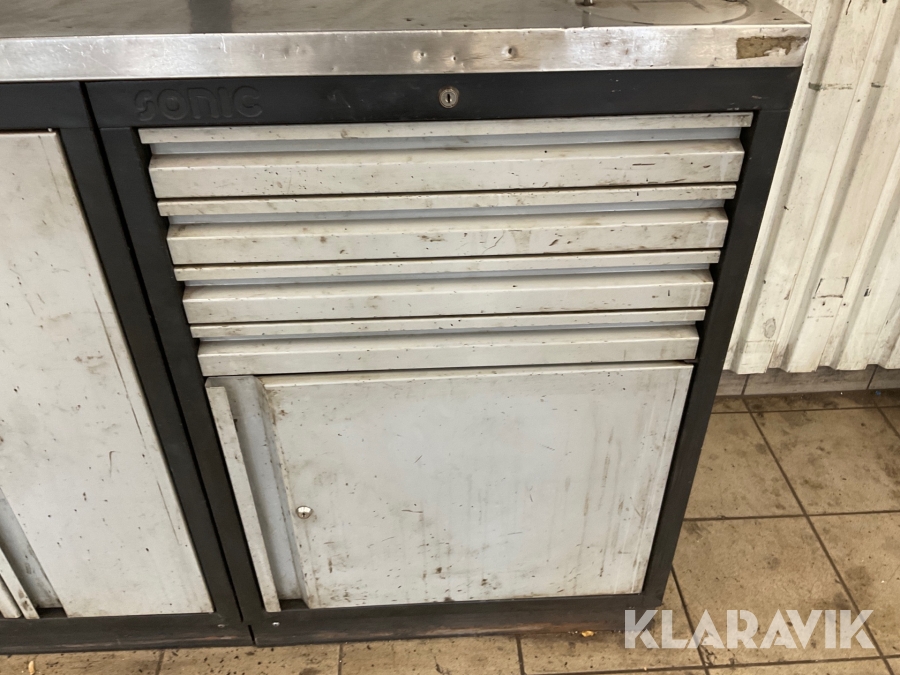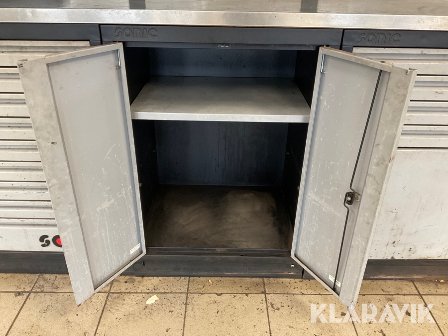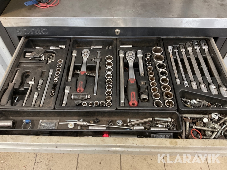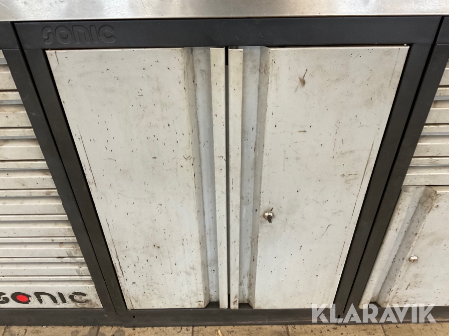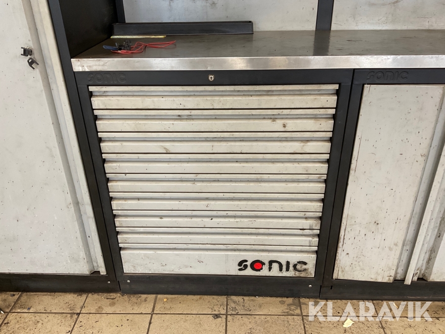 Verkstadsskåp Sonic 3 sektioner med högskåp med diverse olika verktyg