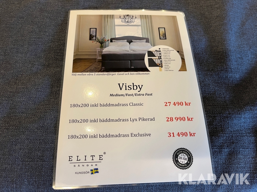 Du som köpare är skyldig att kontrollera objektet vid hämtning. Anmärkningar härefter beaktas inte. Om objektet skiljer sig väsentligt från objektsbeskrivningen ska Klaravik kontaktas innan objektet transporteras (observera att särskilda villkor gäller för konkursauktioner).